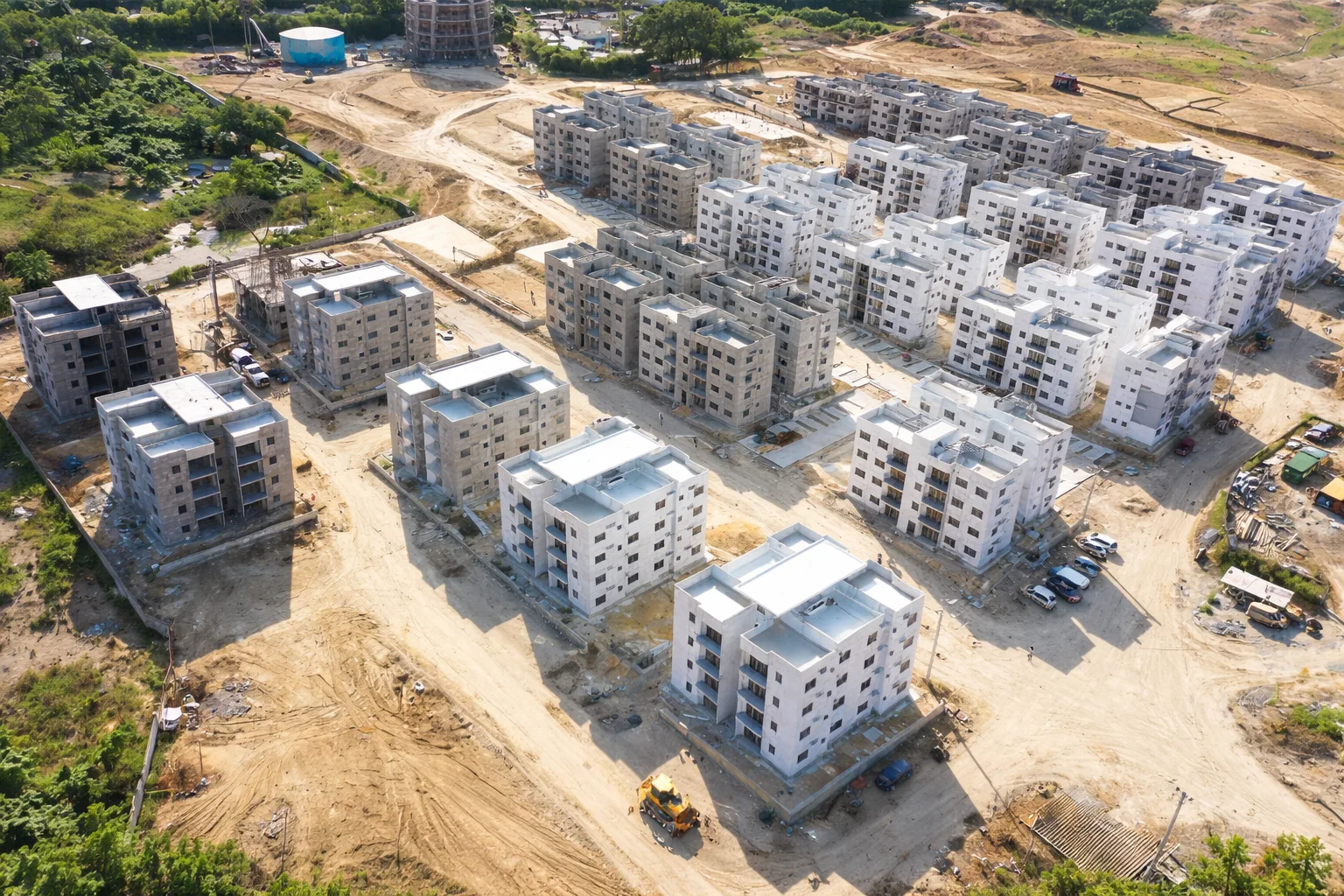 3000 mil viviendas en el sector Santo domingo Norte. Suministro de hormigón desde batching plant en situ.